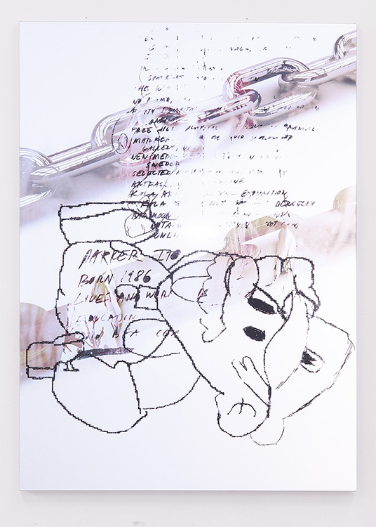 As Parker Ito’s presence on the Internet grows, his presence in the art world also grows. But his presence in the latter is more than just a presence, because the Internet not simply expands the art world, but also supplants it to a certain extent. It not only enables and facilitates, but also habituates artists to take matters into their own hands. At a time, when the art world has become professionalized and specialized, Parker Ito is among a bunch of new artists who move in the opposite direction. He sometimes writes his own press releases while claiming he does not believe in press releases. On his iPhone he translates his PR into the language of picture characters, emojis, which he in turn reintegrates into a painting, which is sold to a collector while also circulating as an image on the Internet. On various websites he curates shows. Sometimes he also sells the works online. On the Internet he shows photos of himself posing in front of his own works, making selfies, which imitate his own self-portraits. He exhibits pictures in gallery spaces, which are made to be multiplied. The professional art photographer might shoot his photos, but Parker Ito might change them – either afterwards or preemptively. He makes reflector paintings which shortcircuit the idea of one good photo per work. These paintings change according to the light and the position of the viewer. Though they are flat, sealed with a layer of vinyl, they behave as sculptures, which are experienced on the move. Except now it is no longer the body of the viewer, which is on the move, but the image itself. It looks in many different ways in the gallery room. It looks in still more different ways when photographed. And as it travels from camera to Photoshop to various websites, it keeps changing. Parker Ito takes on the role of all the other agents in the art world. He can be the curator, the art writer, the dealer, the photographer. He can even be the collector who commissions works. And yet, Parker Ito does not replace all these different players. He simply plays them in order to play with them. He is not interested in institutional critique. If anything, he is into institutional change. In this way, he becomes an art world onto himself – an art world within an art world just as he becomes a network within a network where the former becomes difficult to tell from the latter. It might seem a complete mess. But it might also simply be another order.