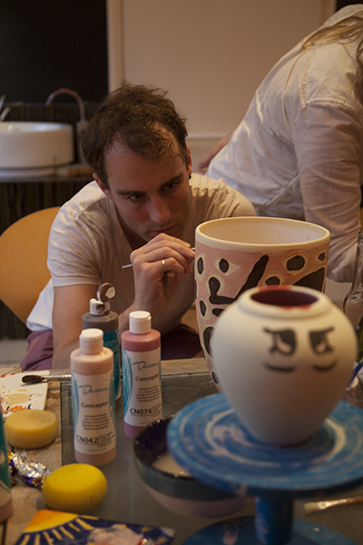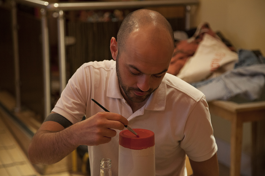 The next morning you wake up late for a meeting. You pass quickly through the hotel towards a taxi, past the bar. The gallerist is still sitting, drinking, in the same clothes, in the same seat.